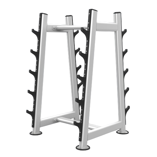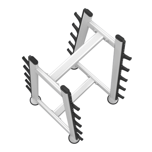 ● Provides 10 positions of space-saving storage for fixed head barbells, fixed head curve barbells, barbell bars, and more.